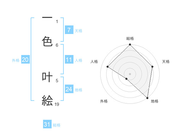 一色 叶絵さんの総格は31画の5点!