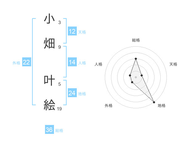 小畑 叶絵さんを姓名の画数から五運を鑑定
