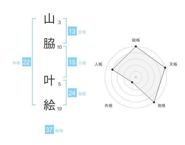 山脇 叶絵さんを姓名の画数から五運を鑑定