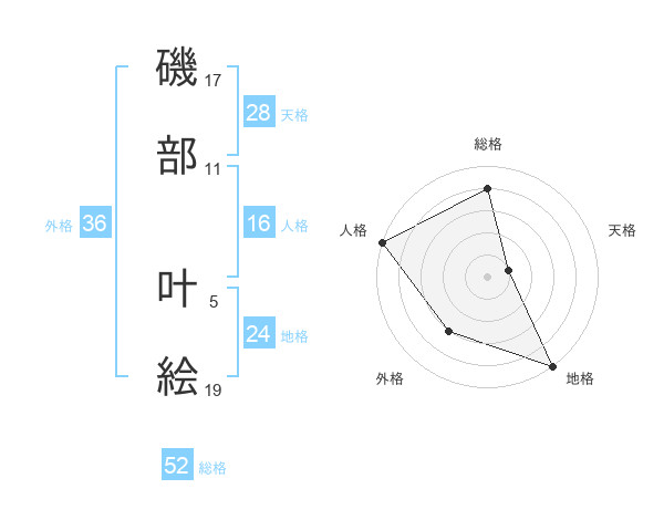 磯部 叶絵さんの総格は52画の4点!