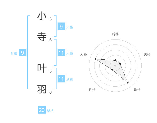 小寺 叶羽さんを姓名の画数から五運を鑑定