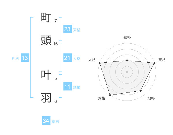 町頭 叶羽さんを姓名の画数から五運を鑑定