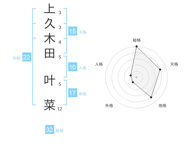 上久木田 叶菜さんの天格は15画の4点