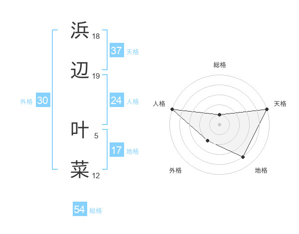 浜辺 叶菜さんを姓名の画数から五運を鑑定