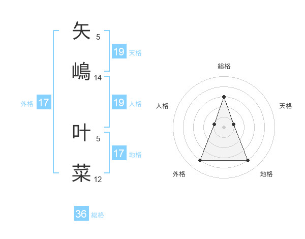 矢嶋 叶菜さんの外格は17画の4点!