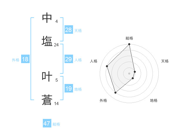 中塩 叶蒼さんの総格は47画の5点!