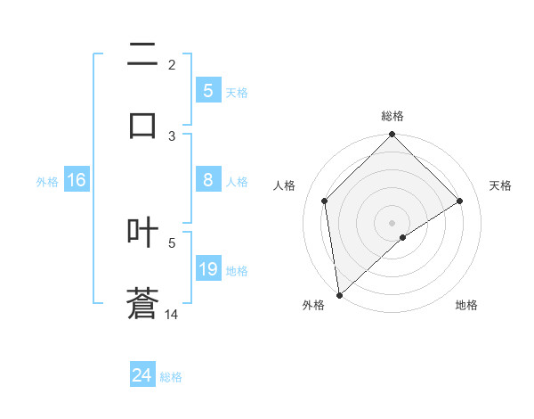 二口 叶蒼さんを姓名の画数から五運を鑑定