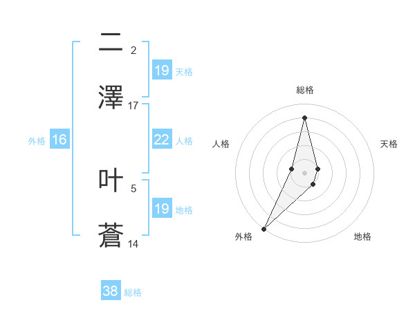 二澤 叶蒼さんの総格は38画の4点!