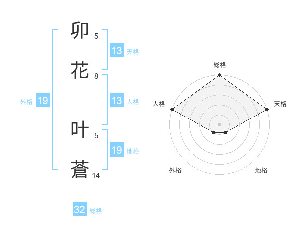 卯花 叶蒼さんを姓名の画数から五運を鑑定