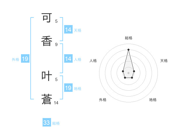 可香 叶蒼さんの総格は33画の4点!