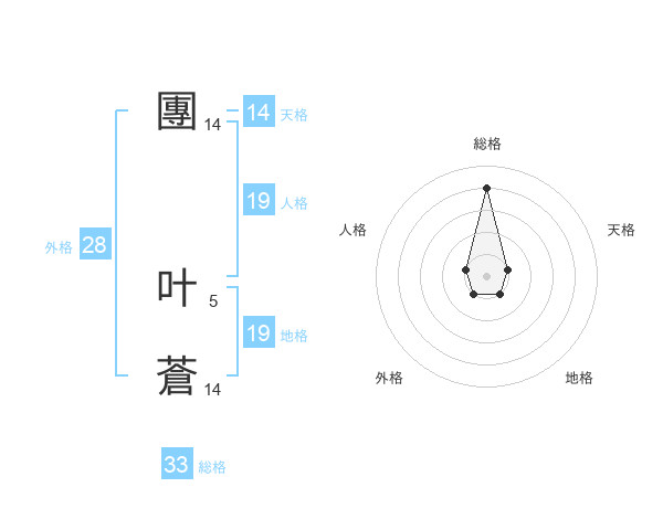 團 叶蒼さんの総格は33画の4点!