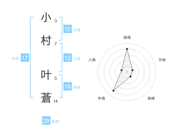 小村 叶蒼さんを姓名の画数から五運を鑑定