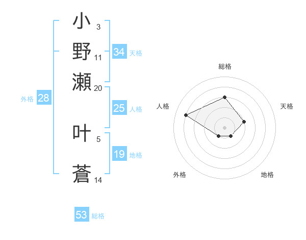 小野瀬 叶蒼さんを姓名の画数から五運を鑑定