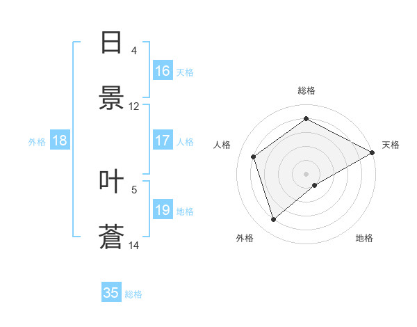日景 叶蒼さんを姓名の画数から五運を鑑定