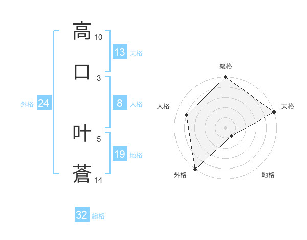 高口 叶蒼さんの総格は32画の5点!