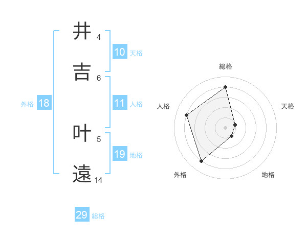 井吉 叶遠さんの総格は29画の4点!
