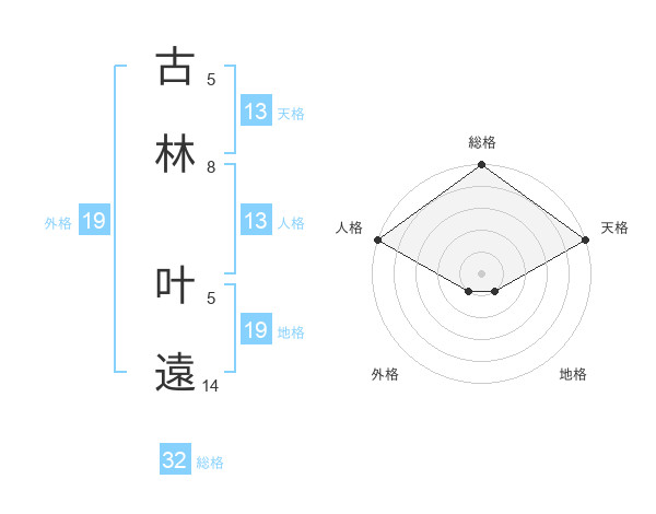 古林 叶遠さんを姓名の画数から五運を鑑定