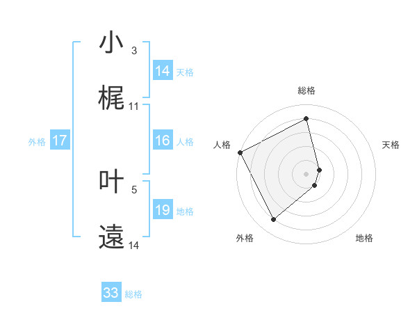 小梶 叶遠さんを姓名の画数から五運を鑑定