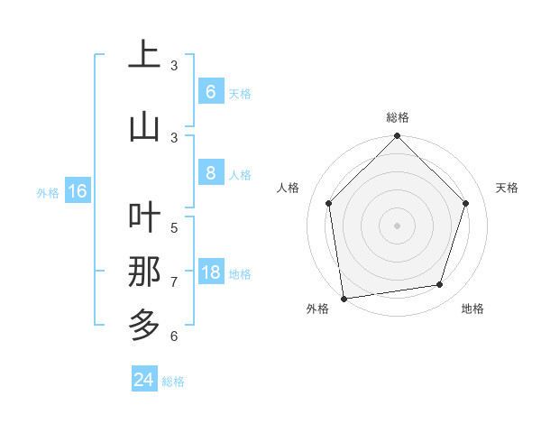上山 叶那多さんを姓名の画数から五運を鑑定