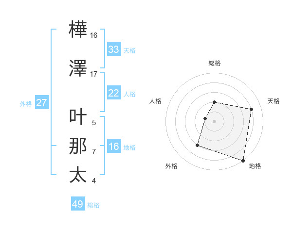 樺澤 叶那太さんを姓名の画数から五運を鑑定