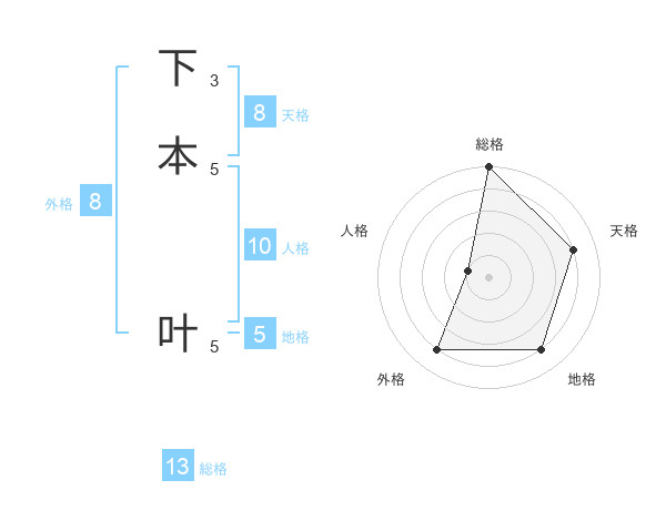 下本 叶さんの総格は13画の5点!