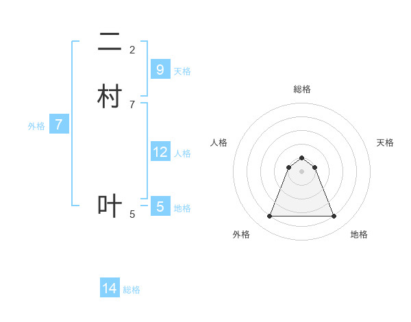二村 叶さんを姓名の画数から五運を鑑定
