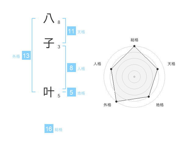 八子 叶さんの総格は16画の5点!