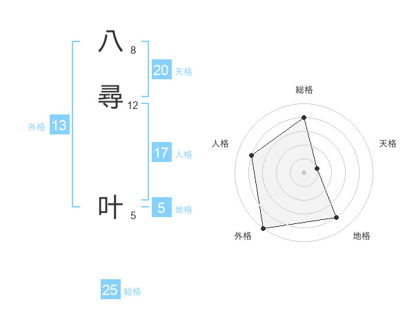八尋 叶さんの天格は20画の1点!