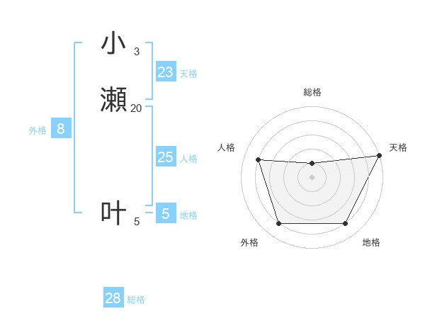 小瀬 叶さんを姓名の画数から五運を鑑定