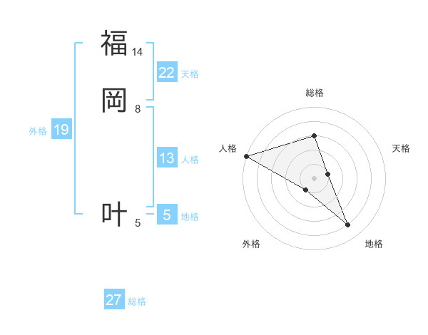 福岡 叶さんの総格は27画の3点!