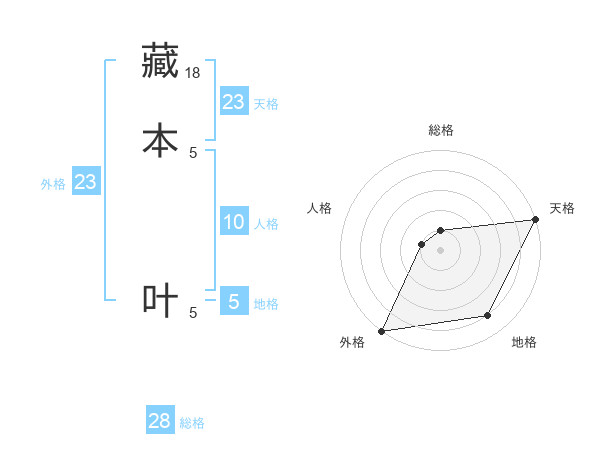 藏本 叶さんの天格は23画の5点!
