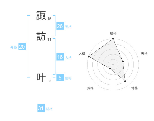 諏訪 叶さんの総格は31画の5点!