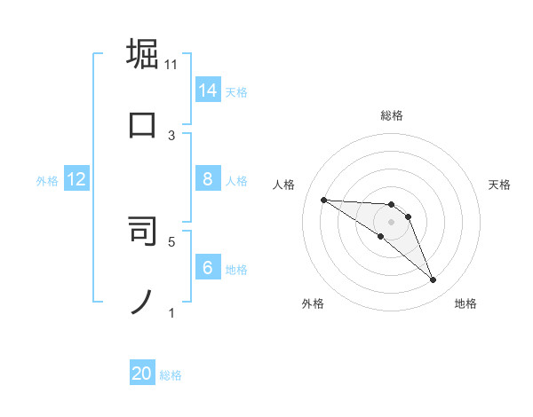 堀口 司ノさんを姓名の画数から五運を鑑定