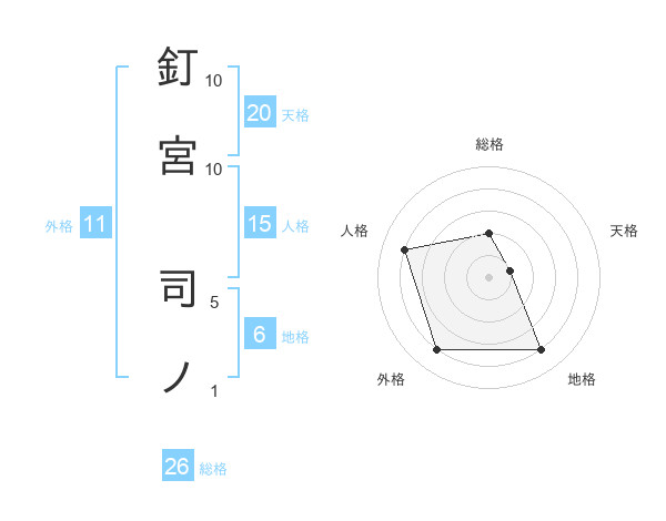 釘宮 司ノさんの人格は15画の4点!