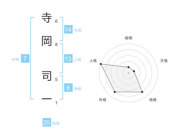寺岡 司一さんの総格は20画の1点!