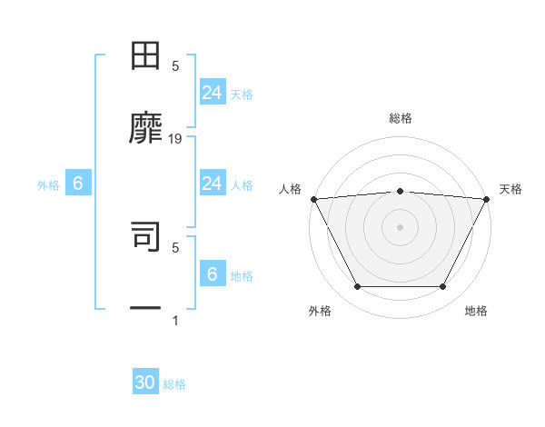 田靡 司一さんの天格は24画の5点!