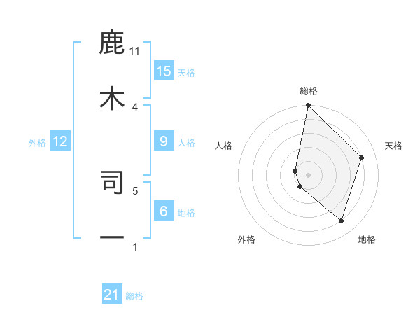 鹿木 司一さんを姓名の画数から五運を鑑定