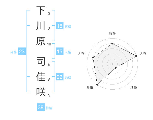 下川原 司佳咲さんの総格は38画の4点!