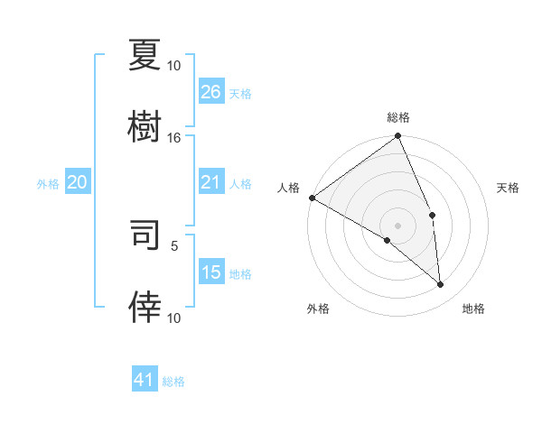 夏樹 司倖さんの総格は41画の5点!
