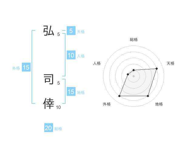 弘 司倖さんの総格は20画の1点!
