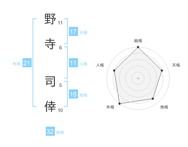 野寺 司倖さんの外格は21画の5点!