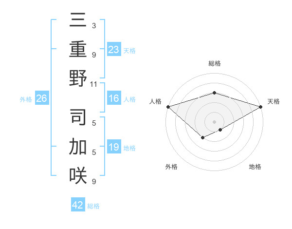 三重野 司加咲さんを姓名の画数から五運を鑑定