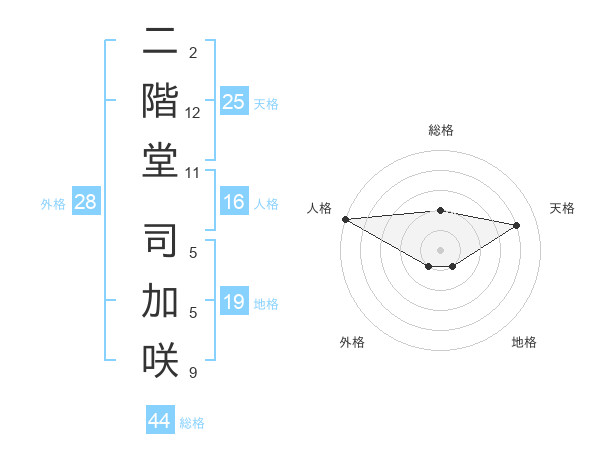 二階堂 司加咲さんを姓名の画数から五運を鑑定