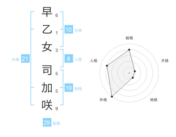 早乙女 司加咲さんを姓名の画数から五運を鑑定