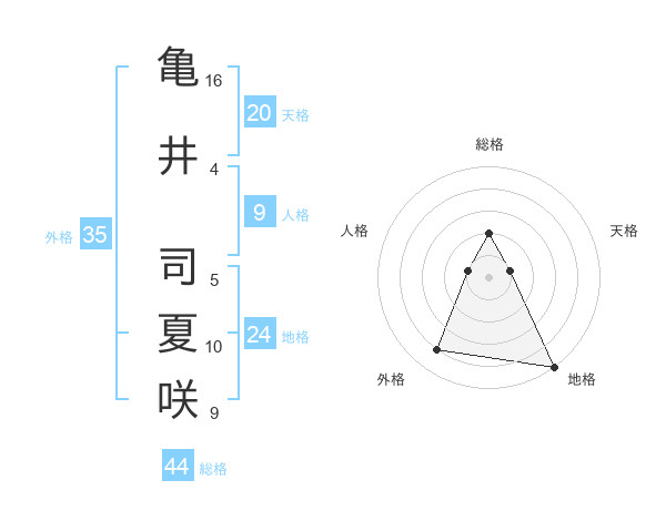 亀井 司夏咲さんの総格は44画の2点!