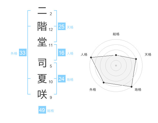 二階堂 司夏咲さんを姓名の画数から五運を鑑定