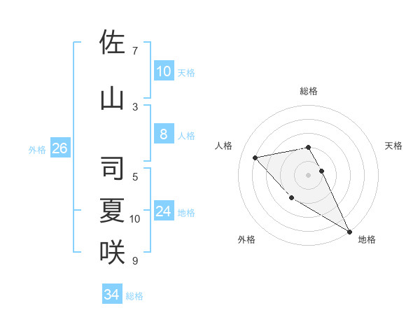 佐山 司夏咲さんの総格は34画の2点!