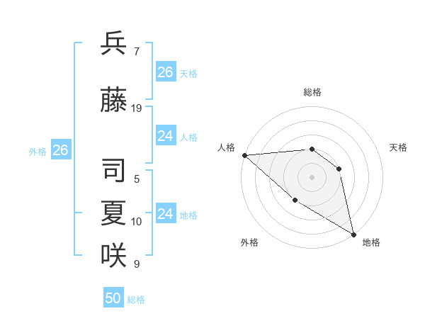兵藤 司夏咲さんの総格は50画の2点!