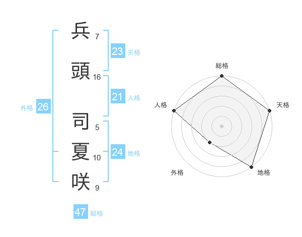 兵頭 司夏咲さんを姓名の画数から五運を鑑定