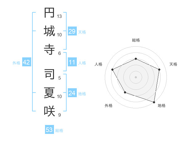 円城寺 司夏咲さんの総格は53画の3点!
